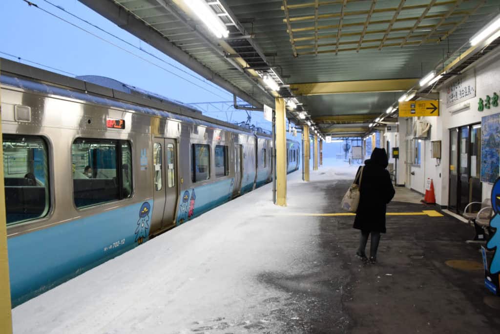 北海道からそうでしたが、2017年は3月にも関わらず大雪で、浅虫行きの列車も雪に覆われていました。また、浅虫温泉の温泉街も、早朝ということもありましたが、めっちゃ寒くて。ただただ、雪の中を遭難しそうになりながら歩いた、そしてだからこそ温泉がとても温かったことを覚えていました。